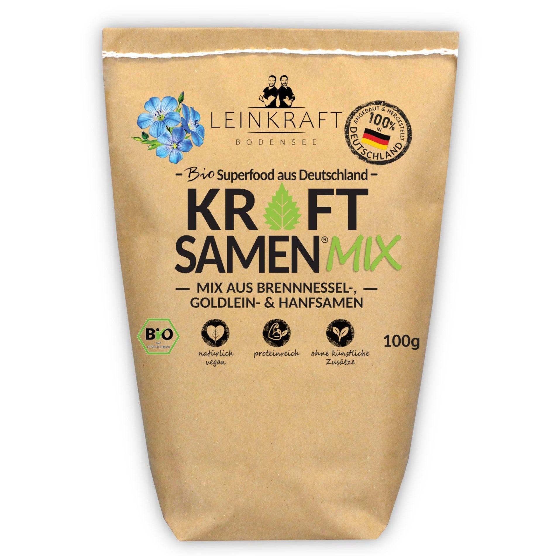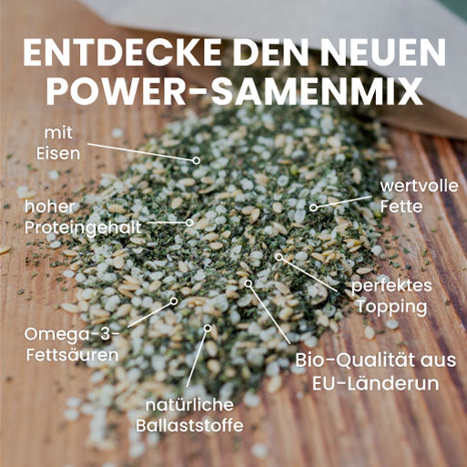 Die Power-Samenmischung: Unsere Kraftsamen® in Bio-Qualität mit geschälten Hanfsamen, goldenen Leinsamen und Brennnesselsamen sind echte Kraftpakete!